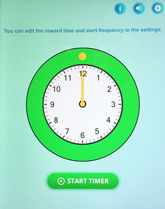 Set alternate times: Press the “wheel” in the top right-hand corner of the screen. The controls for the Sound Cue and Reward duration are here.